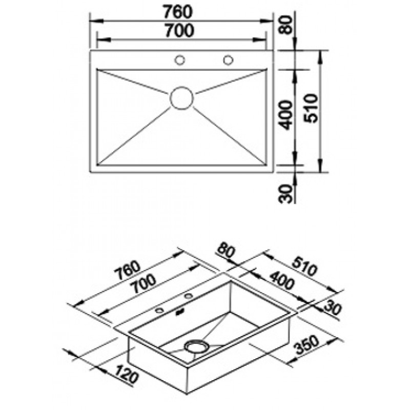 1) Мойка для кухни прямоугольная BLANCO ZEROX 700-IF/А