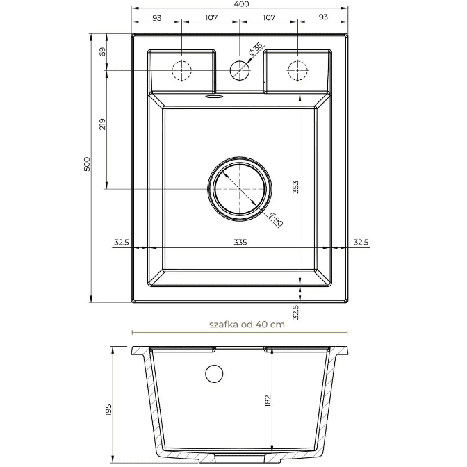 1) Мойка для кухни Sink Quality Ferrum IK 40 40x50x19,5 с переливом наногранит