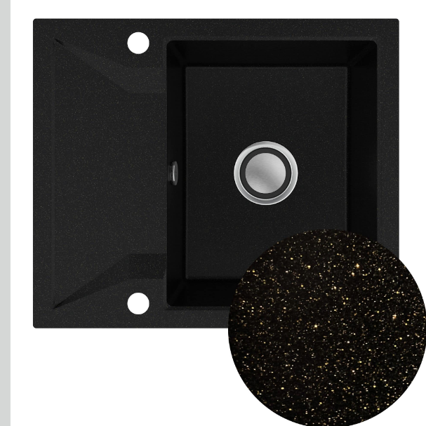 Мойка для кухни Sink Quality Obsidian 1KKO 59x50x21 см с переливом наногранит черный с золотом OBS.L.1KKO.X
