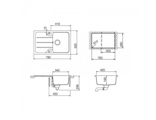 - Диаметр сливного отверстия, мм: 90 (3 1/2")