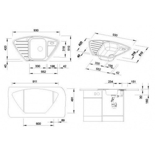 Мойка для кухни угловая Blanco Lantos 9 E-IF нержавеющая сталь полированная 516277