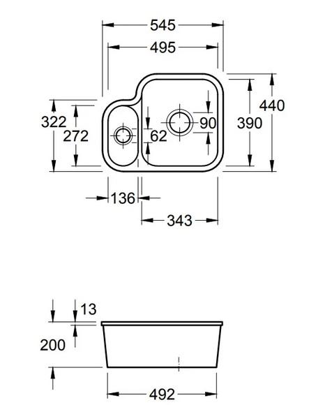 Мойка для кухни Villeroy & Boch Cisterna 60B 54,5х44 см под столешницу керамика steam