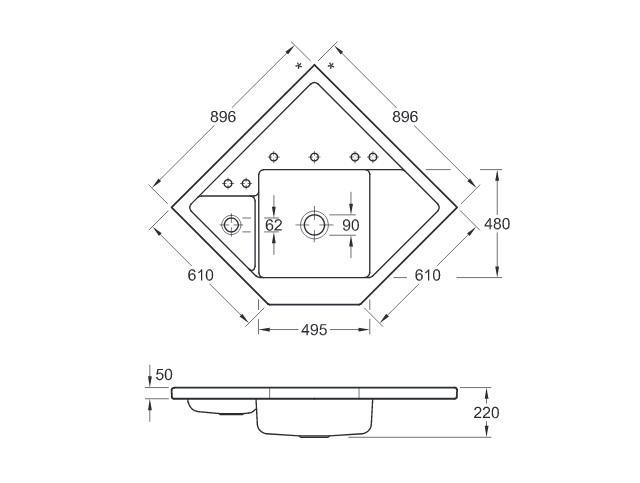 Мойка для кухни Villeroy & Boch Monumentum угловая 89,6х89,6 см керамика stone white 330301RW