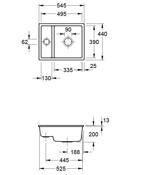 Мойка для кухни Villeroy & Boch Subway 60 XU 54,5х44 см под столешницу керамика ebony