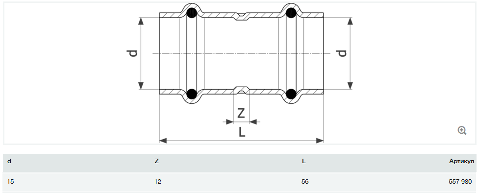 Муфта Viega Prestabo 1115 15 нелегированная сталь 557980