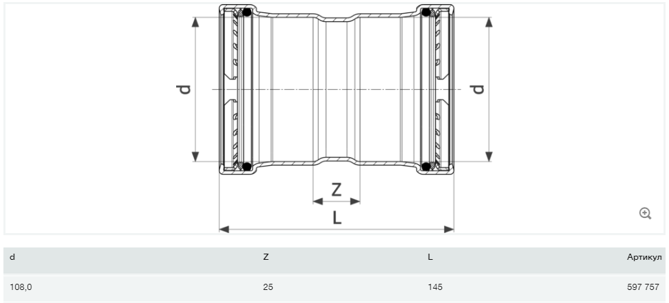 Муфта Viega Prestabo XL 1115XL 108 нелегированная сталь