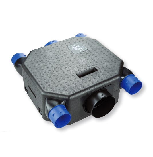 Вытяжная установка для всего дома. Низкопрофильная и малошумная группа регулирования влажности, обеспечивающая постоянное обновление воздуха в одноквартирных жилых домах или многоквартирных домах (индивидуально). Блок соответствует требованиям, установленным Техническим строительным кодексом. Система дополнена воздухозаборниками с регулируемой влажностью (гостиная и спальни) и с клапанами вытяжки с регулируемой влажностью во влажных помещениях (ванные комнаты и кухня). Эта система позволяет улучшить энергетические характеристики дома, снизить потребление тепла и повысить комфорт пользователя.