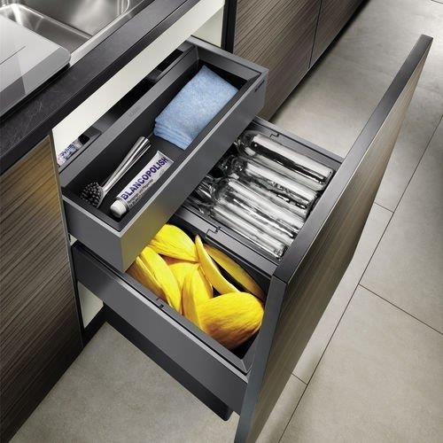 Новое поколение мусорных систем и систем хранения. Легкий монтаж в любой кухонный шкаф в сочетании с любой мойкой BLANCO. Отсутствие неприятных запахов: плотно прилегающая накрывающая пластина препятствует распространению неприятных запахов в помещении. Действительно удобно и очень практично!