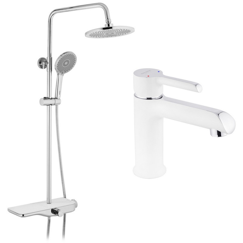 Набор 2 в 1 душевая система Kroner Armada-W065 + смеситель для раковины Essen-W010 хром/белый CVS30223