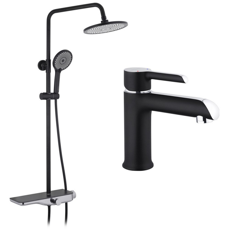 Набор 2 в 1 душевая система Kroner Armada-SCH065 + смеситель для раковины Essen-SCH010 хром/черный