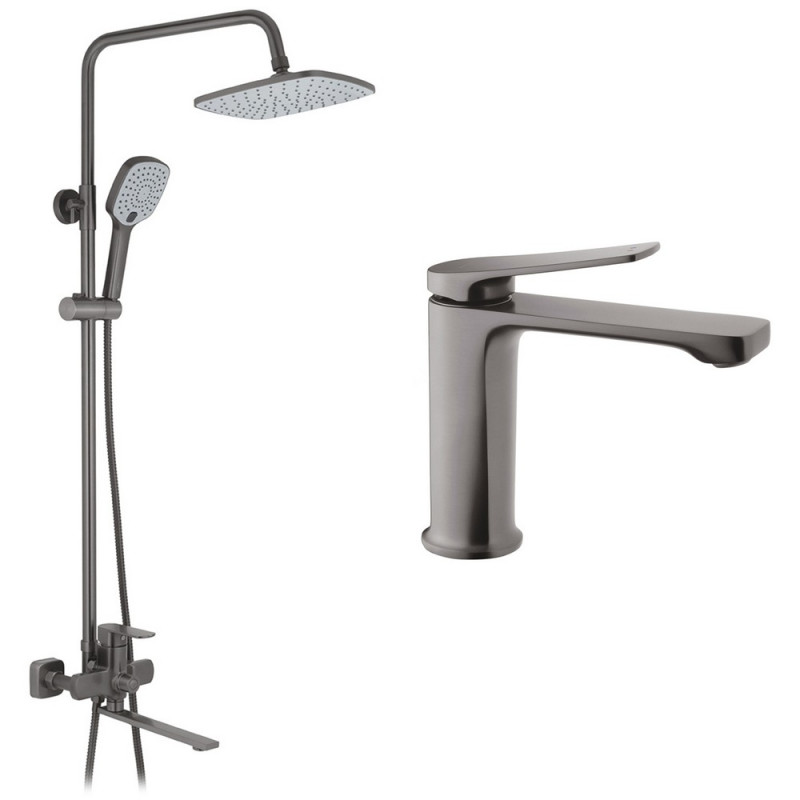 Набор 2 в 1 душевая система Kroner Armada-GRP067 + смеситель для раковины Makon-GRP010 графит