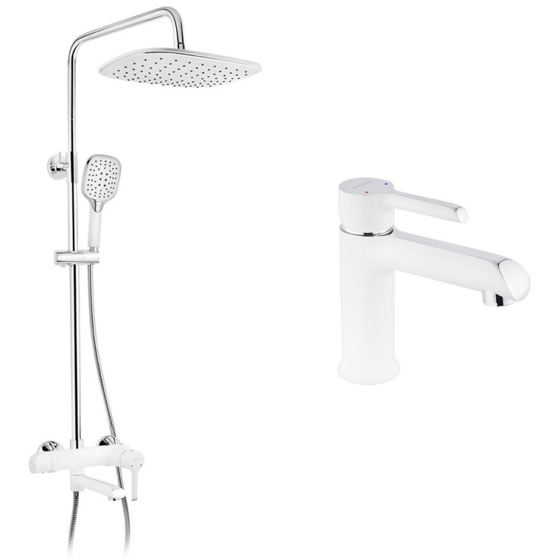 Набор 2 в 1 душевая система Kroner Essen-W063 + смеситель для раковины Essen-W010 хром/белый CVS30217