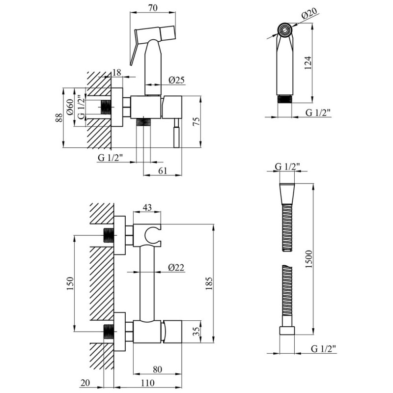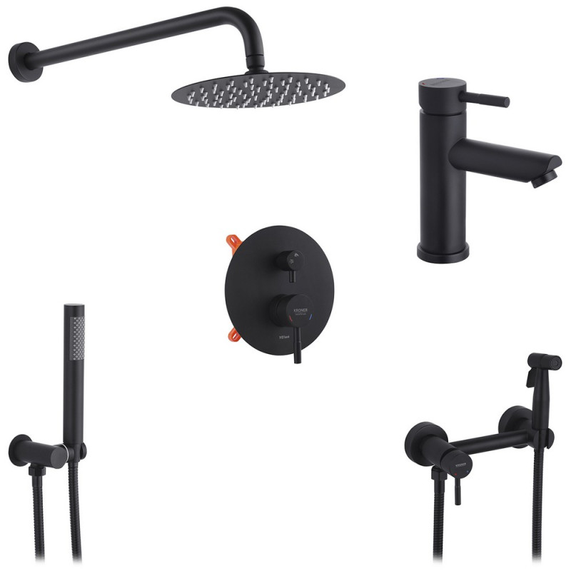 Набор 3 в 1 душевая система Kroner Edelstahl Klassisch-SCH082 + смеситель Edelstahl Klassisch-SCH010 + гигиенический душ SCH052 черный CVS30167