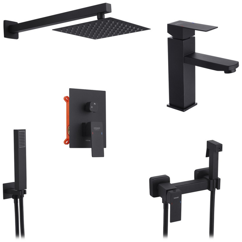 Набор 3 в 1 душевая система Kroner Edelstahl Kubus-SCH082 + смеситель Edelstahl Kubus-SCH010 + гигиенический душ SCH052 черный