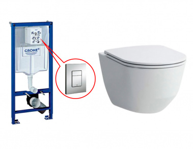 Набор 4 в 1 Grohe Solido Perfect: подвесной унитаз с сиденьем и крышкой + система инсталляции с панелью смыва Skate Air 39192000