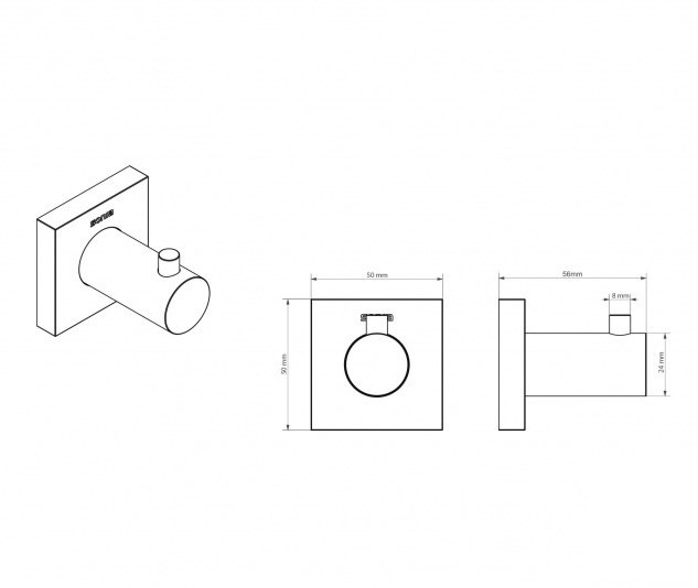 - Крючок для халата / полотенца. Одинарный крючок. Габариты (ДхШхВ): 5.6x5x5 см.