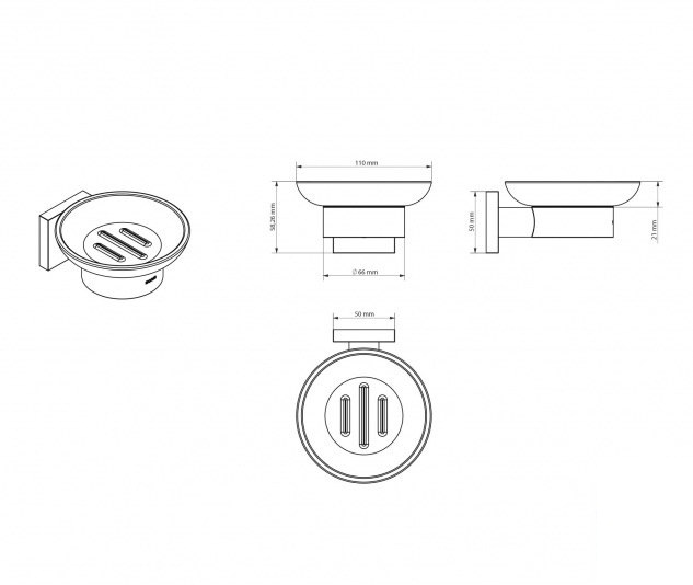 - Мыльница (блюдце с держателем, круглое). Чаша для мыла из белого матового стекла. Габариты (ШхВ): 11,5x5,8 см