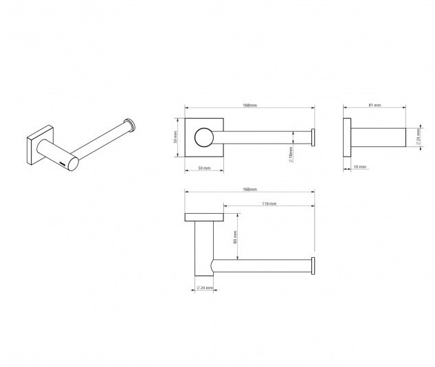 - Держатель бумаги открытый, без крышки. Габариты (ДхШхВ): 8,1x16,8x5 см