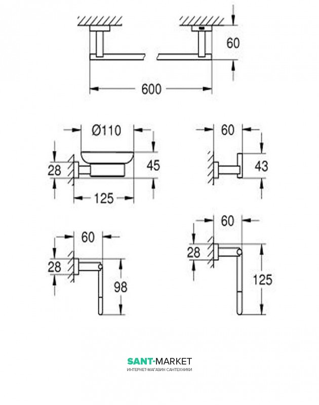 Состоящий из кольца для полотенца, держателя для полотенца 600 мм, крючка для халата, держателя для туалетной бумаги и держателя для мыльницы с мыльницей, комплект аксессуаров GROHE Essentials Cube, выполненный в цвете хром станет идеальным выбором для вашей ванной. Все части комплекта сделаны в дизайне, неподвластном времени и с применением современных технологий.