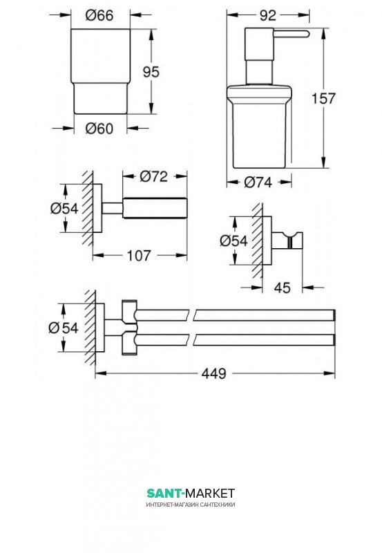 Набор аксессуаров Grohe Essentials New 4 в 1 хром 40846001
