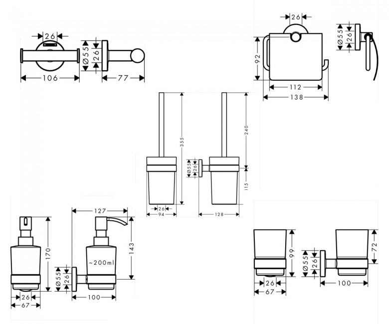 Набор аксессуаров для ванной комнаты Hansgrohe Logis 5 предметов хром 41723111