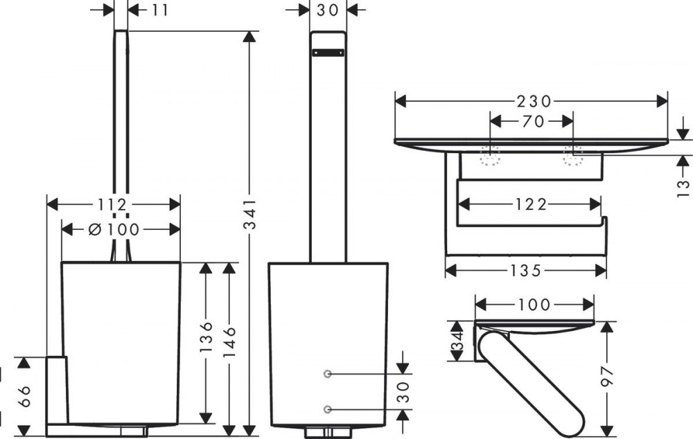 1) Держатель туалетной бумаги