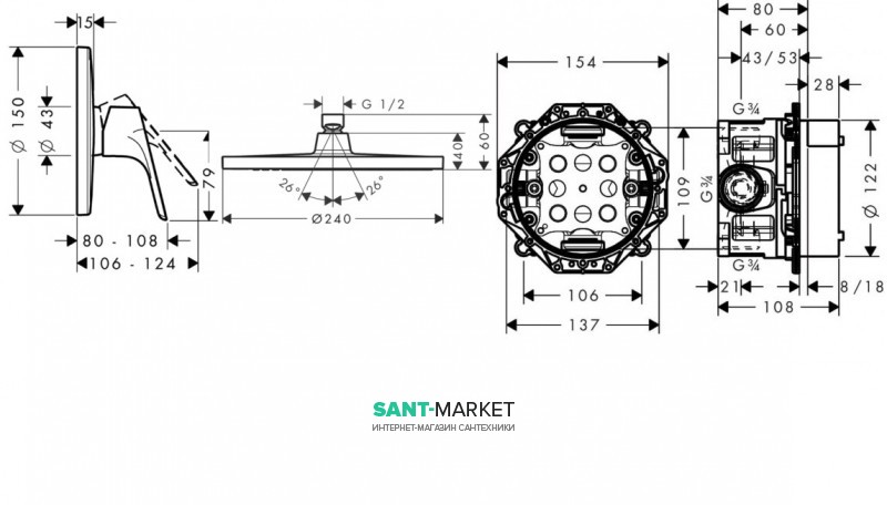 Набор скрытого монтажа для душа Hansgrohe Focus 31965000+26723000+27413000+01800180