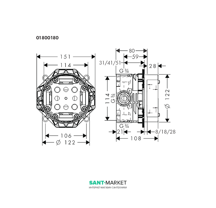 - crрытая часть смесителя Hansgrohe 01800180