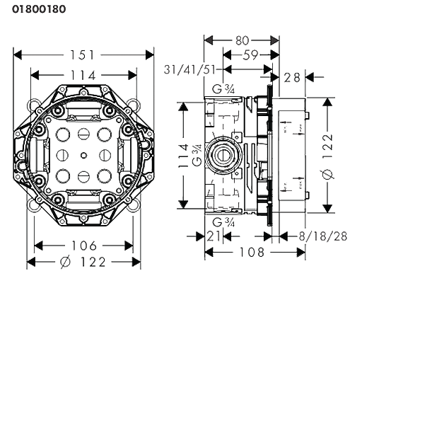 Набор скрытого монтажа для ванны Hansgrohe Focus хром 31607000+27772000+31945000+01800180