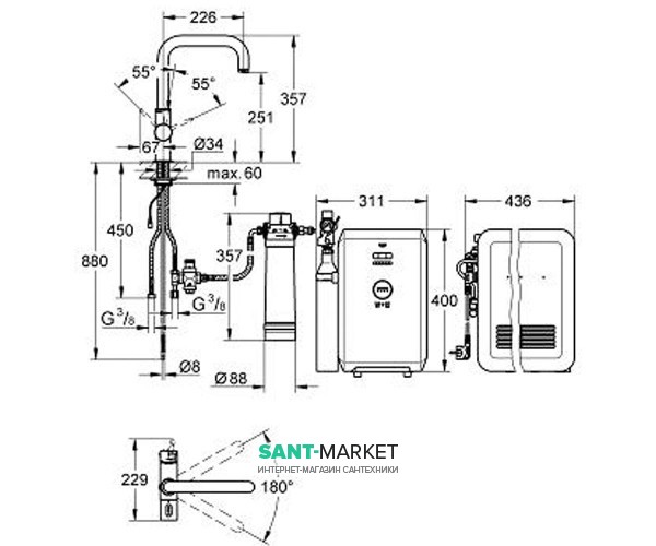 Набор смеситель для кухни с фильтром Grohe Blue® Professional с фильтрацией охлаждением и газированием воды 31324001