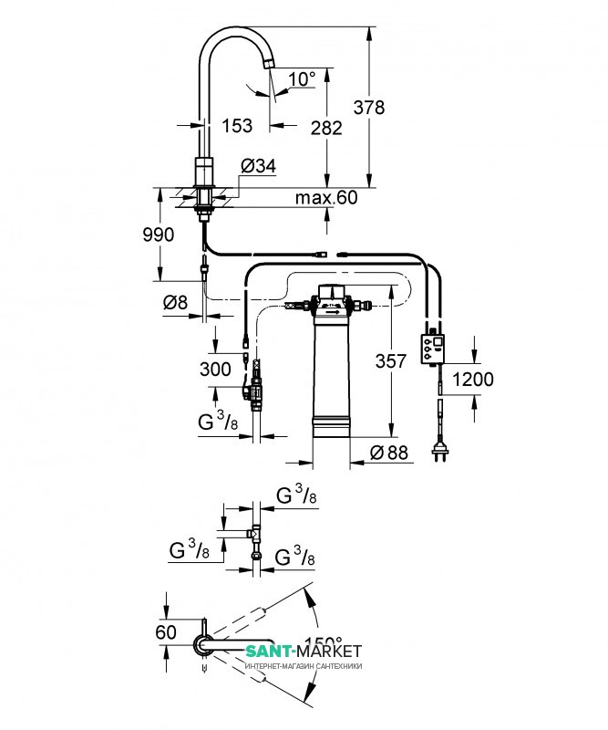 GROHE Blue фильтр на 600 л, регулируемая головка фильтра
