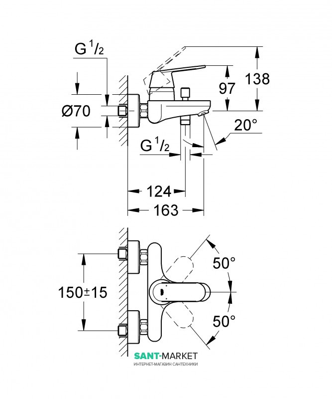 Технические характеристики смесителя для ванны Grohe Eurosmart Cosmopolitan: