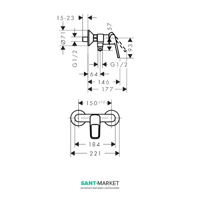 - однорычажный смеситель для душа 71247000