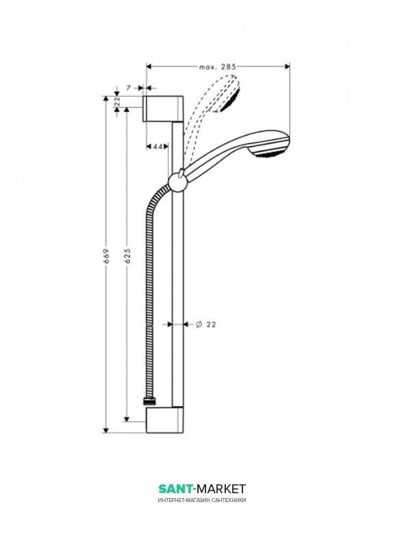 Душевой гарнитур с настенным держателем Hansgrohe коллекция Croma Select S Vario хром/белый 26411400