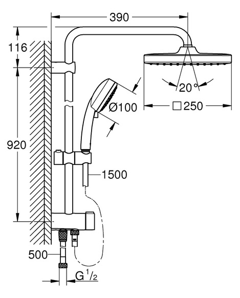 Tempesta Cosmopolitan System 250 Cube Душевая система Flex для настенного монтажа (26694000)