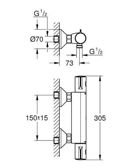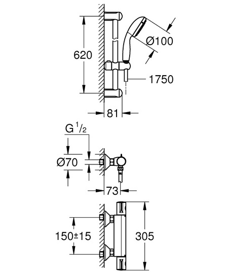 Набор смесителей для ванной Grohe Grohtherm 800 + BauEdge 3 в 1 с душевым гарнитуром хром UA34105TS0