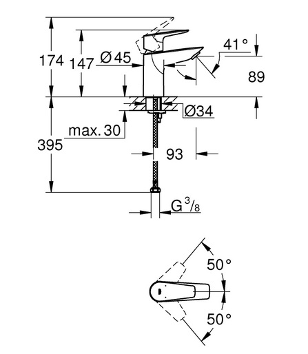- GROHE SafeStop Plus опционно ограничитель температуры на 43°C, включен