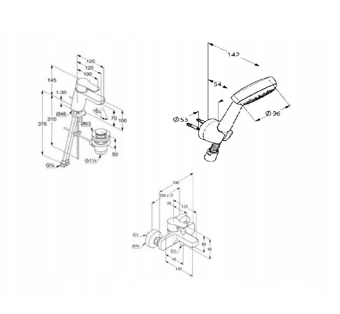 Набор смесителей для ванной Kludi Pure&Easy с душевым гарнитуром хром 376900565
