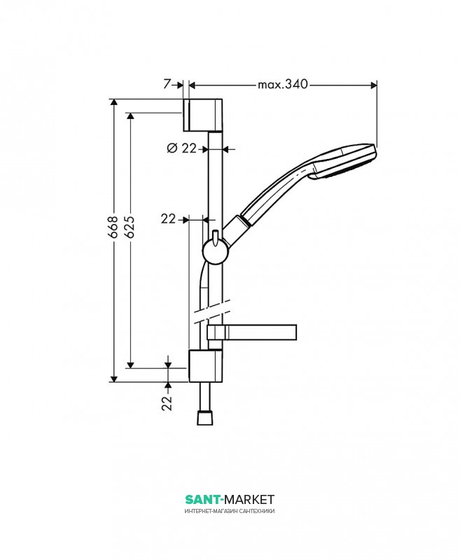 - Штанга для душа 65см Hansgrohe Unica'C 0.65 27611000