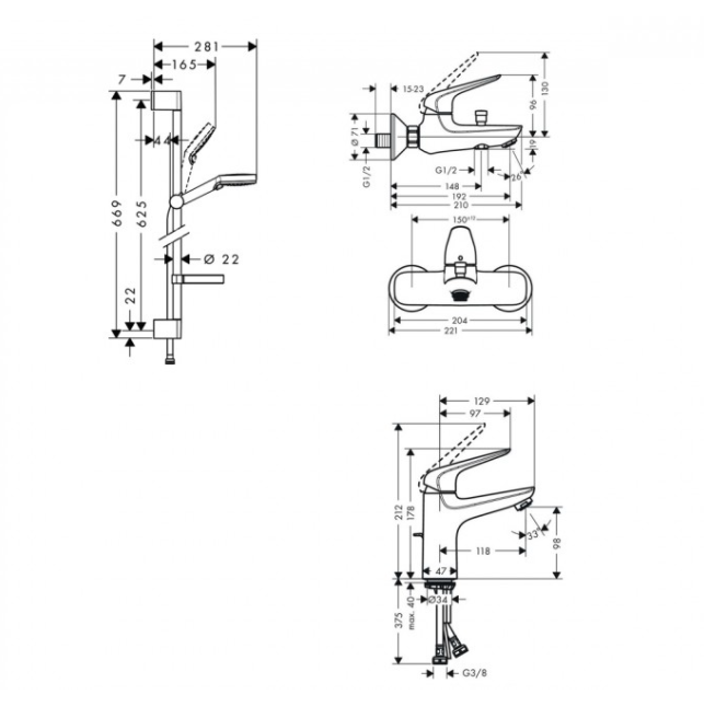 Набор смесителей для ванны Hansgrohe Novus 1152019