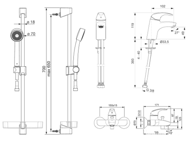 * Oras Apollo 520 –душевой комплект. Душевой шланг 1500 мм, душевая штанга, держатель для душа, удобная, лёгкая в уходе мыльница, настенный кронштейн и ручной душ с защитой от известковых отложений.