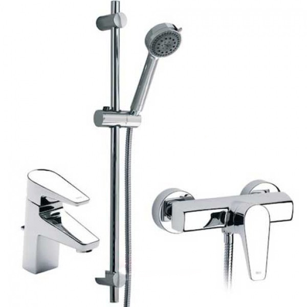 Удобный комплект Roca Esmai сумеет обеспечить ее практически всем необходимым для полноценного использования раковины, ванной или душевой кабины. Набор Roca Esmai имеет отличную комплектацию, в которую входит смеситель для раковины и душа, а также душевой набор, состоящий из ручного душа, штанги и шланга. Как большинство смесителей, модели из этого набора предназначены для монтажа на горизонтальную поверхность с гибкой подводкой труб для раковины и на вертикальную поверхность с жесткой подводкой труб для душа. Душевая лейка имеет 4 режима.