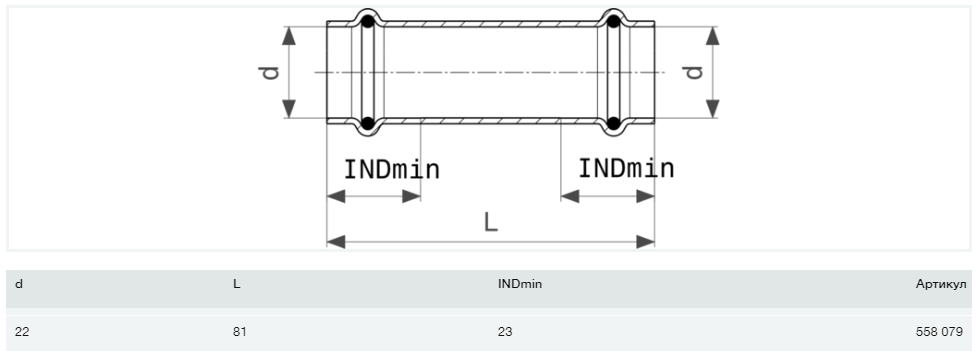 Надвижная муфта Viega Prestabo 1115.5 22 нелегированная сталь 558079