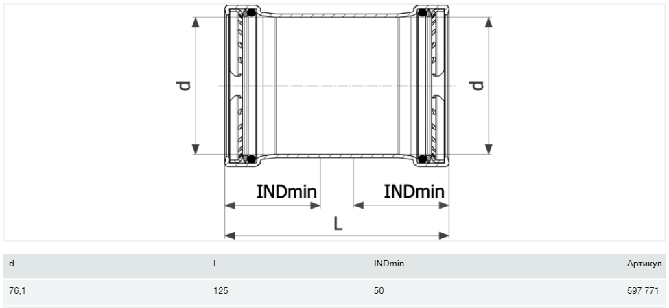 Надвижная муфта Viega Prestabo XL 1115.5XL 76.1 нелегированная сталь