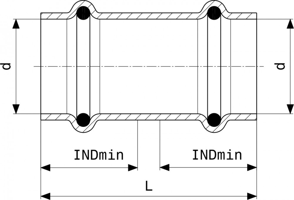 Пресс-соединения имеют круговой валик, в котором лежит уплотнительный элемент. Соединитель деформируется выше и ниже по потоку от буортика и соединяется с трубой во время прессования. Этот уплотнительный элемент не деформируется при прессовании.