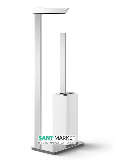 1) Напольная стойка с ершиком для унитаза и держателем для туалетной бумаги Lineabeta Rampin нержавеющая сталь/белый