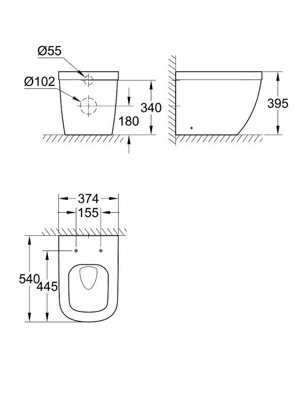 Напольный приставной унитаз Grohe Euro Ceramic с гигиеническим покрытием (без сиденья) альпин-белый 3933900H