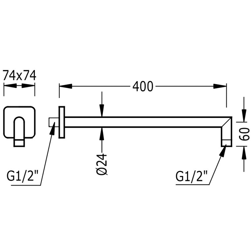 1) Настенный душевой кронштейн Tres 400 мм хром
