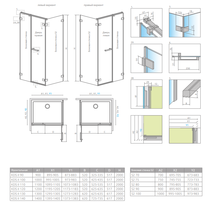 В заказе нужно указать 3 номера артикулов: фронтальной части кабины (два номера: створка двери и неподвожный элемент) и боковой стенки S2.