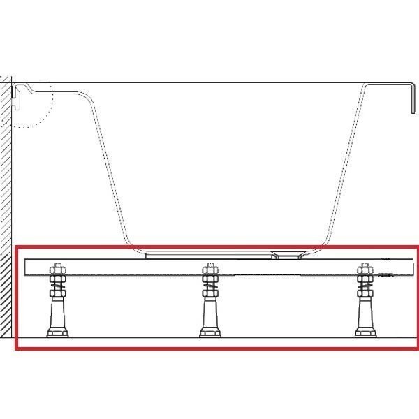 Универсальная опорная конструкция предназначена для акриловых ванн Gentiana, New Day и служит для простого выравнивания плоскости ванны. Установленную таким способом ванну можно обложить кирпичом и облицевать кафелем. Универсальная опорная конструкция состоит из двух металлических балок и четырех регулируемых ножек.
